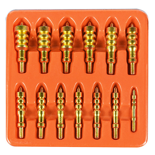 Paquete de 13 puntas de latón para limpieza de pistolas juego, blister, medidas: .177, .22, 6 mm, .25, .27, .30, .338, .35, .357, .40, .44, .45, .50cal.