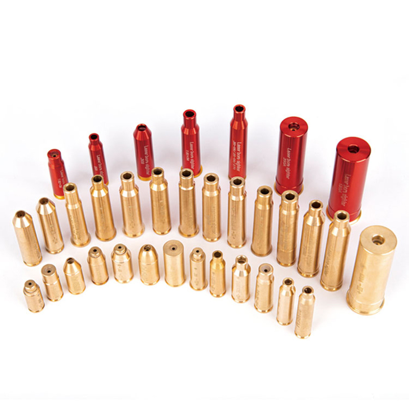 635-655nm Especificación múltiple Opcional Calibrador de visión láser rojo Especificación: •Cartucho láser CAL.45: apto para rifle CAL.45 •Láser rojo: 635-655 nm, salida máxima <5 mw, láser Clase IIIa •Fácil de usar, simplemente instale las baterías en el cartucho láser y atornille la base, que enciende el láser. Retire las baterías para apagar la unidad •Miras de calibre de cartucho prealineadas de fábrica, ayudan a poner a cero su óptica •Construcción de latón