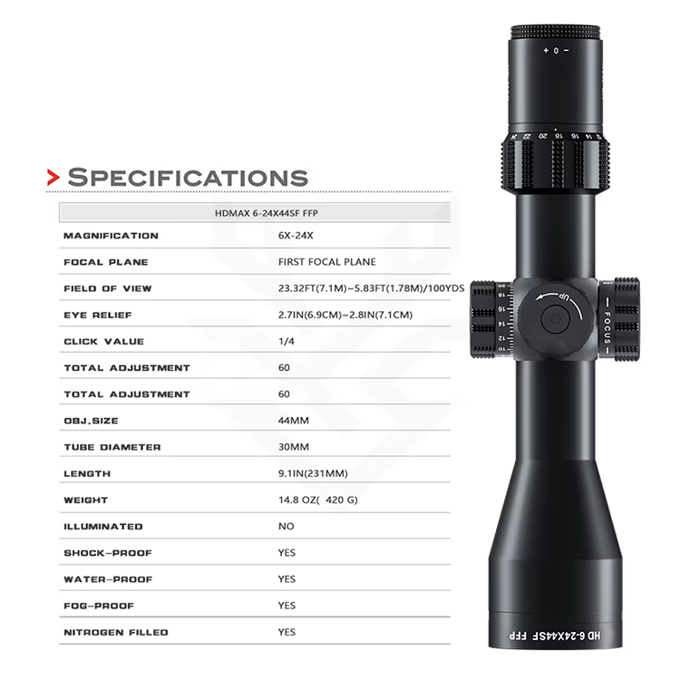 HD MAX 6-24X44 SF FFP HD Telescopio monocular de caza de alta lente al por mayor