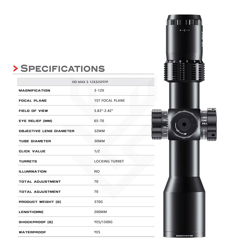 Telescopio monocular de caza de lente alta MAX 3-12X32SF FFP HD al por mayor