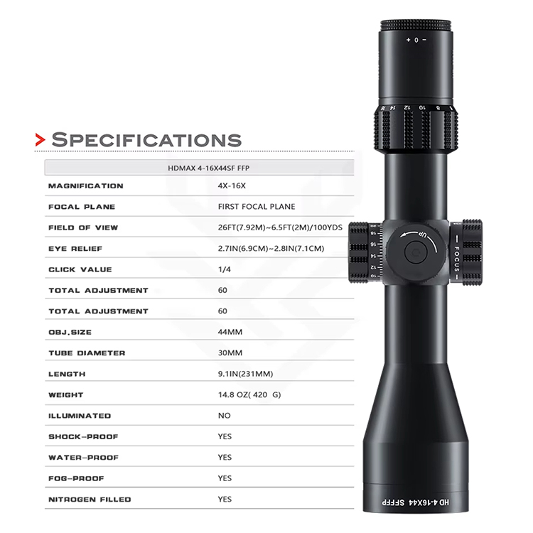 Telescopio monocular de caza de lente alta MAX 4-16X44SF FFP HD al por mayor