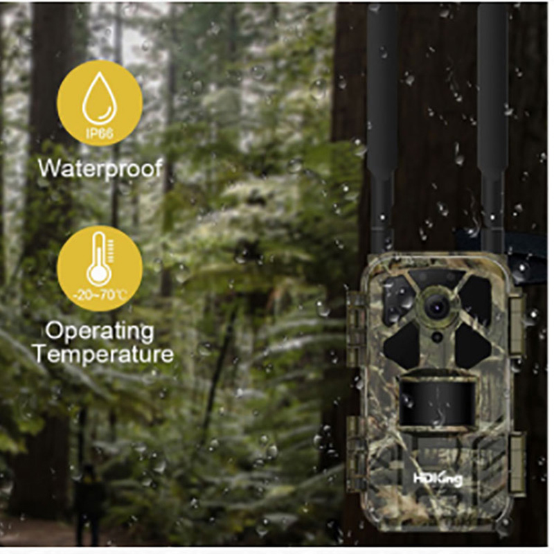 4G Inalámbrico / Diseño de antena dual / IP65 a prueba de agua / Sensor CMOS de 5.0M Píxeles / Tiempo de disparo rápido 0.5S / Tiempo de espera prolongado / Rango de visión nocturna largo / Temperatura de funcionamiento