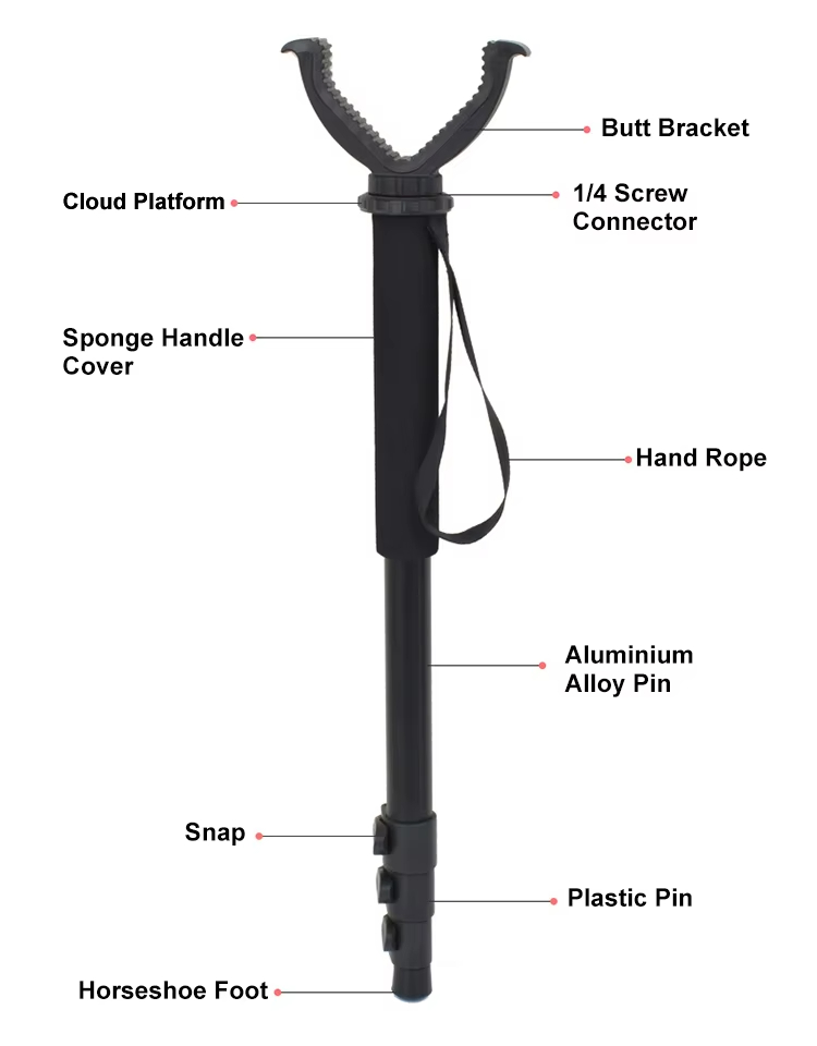 Trípode portátil para pistola táctica al aire libre, soporte para caza, caña de tiro telescópica, trípode de yugo giratorio en forma de V