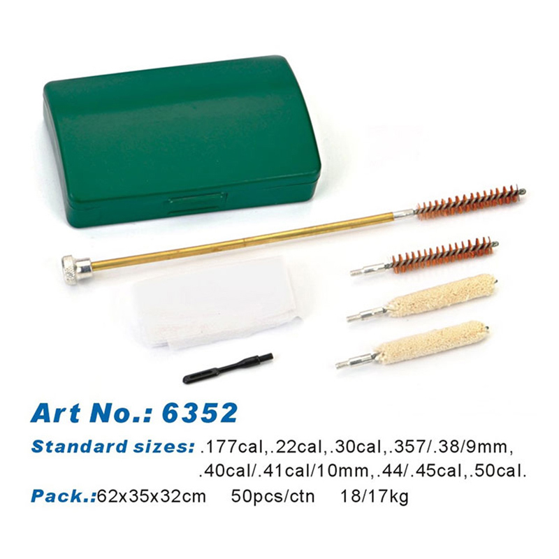 Kit de limpieza de pistola de plástico pequeño ● La caja de plástico curvada es antideslizante sobre la mesa. ● Cepillos de alta resistencia y soporte para parche ranurado, buenos para la limpieza de orificios. ● 2 cepillos de latón y 2 fregonas de algodón. Si uno se agotó, puedes usar el siguiente. ● Colgando y eficaz ● Fácil de colocar el adhesivo y el logotipo del OEM o del cliente.