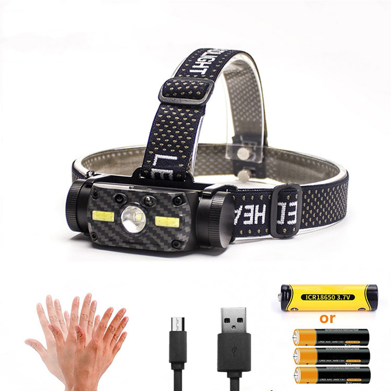 Linterna frontal LED con carga USB de 10 modos a prueba de agua y sensor inteligente