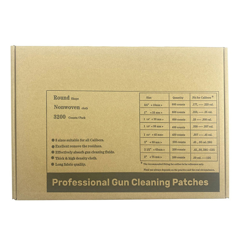 Caja de ampolla de parches de limpieza de pistola redondos de tela de algodón blanco universal, 8 tamaños, 3540 unidades ● 【Paquete combinado todo en uno】 Los parches de limpieza de 8 tamaños pueden adaptarse a armas de fuego de todos los calibres desde .177cal. a Escopeta 12G; Ahorre dinero y tiempo para comprar diferentes tamaños para sus armas de fuego de diferentes calibres; ● 【Material de algodón de alta absorbencia】Esta tela no tejida con alta absorción. Absorbe rápidamente el resto de líquidos, elimina residuos y óxido de la superficie del orificio. ● 【Material grueso】 La superficie gruesa de tela no tejida refuerza en gran medida el rendimiento de limpieza. ● 【Cada tamaño en una bandeja】 Empacamos los 8 tamaños por 8 bandejas. Y cada bandeja con su tamaño impreso al lado de la bandeja. Fácil de encontrar y tomar el tamaño correcto del paquete. ● 【OEM】Se acepta el logotipo del cliente.