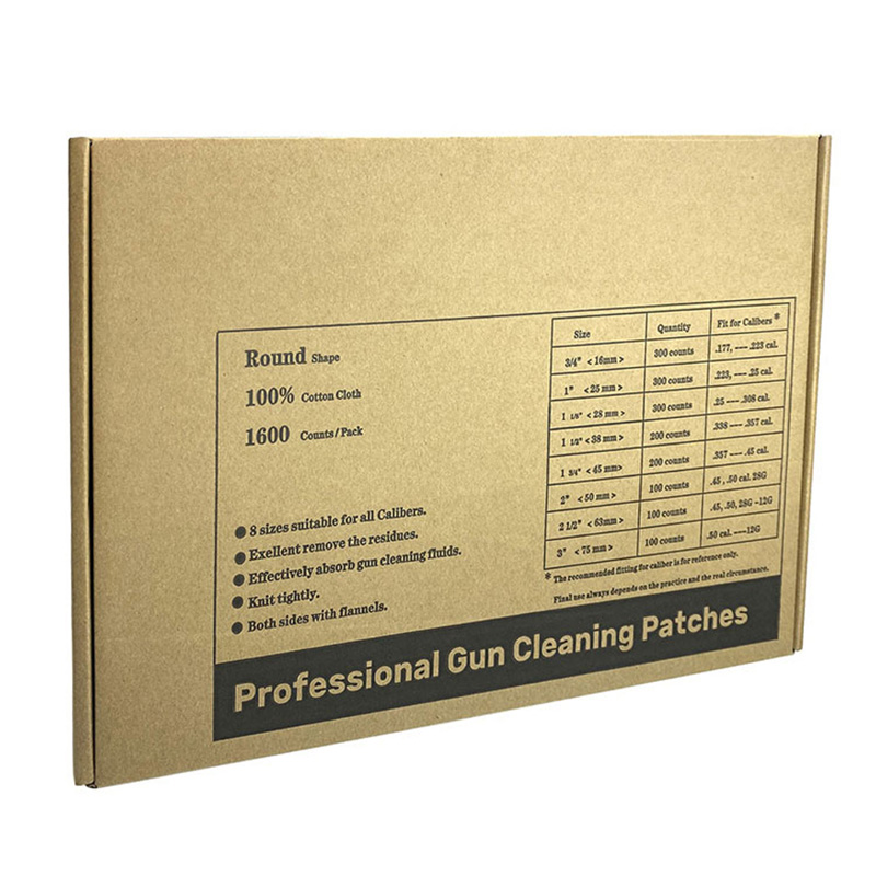 Caja de ampolla de parches de limpieza de pistola cuadrados de tela de algodón blanco universal, 8 tamaños, 1600 unidades ● 【Paquete combinado todo en uno】 Los parches de limpieza de 8 tamaños pueden adaptarse a armas de fuego de todos los calibres desde .177cal. a Escopeta 12G; Ahorre dinero y tiempo para comprar diferentes tamaños para sus armas de fuego de diferentes calibres; ● 【Material de algodón de alta absorbencia】 Material 100% algodón de alta absorción. Absorbe rápidamente el resto de líquidos, elimina residuos y óxido de la superficie del orificio. ● 【Paño de franela】La superficie del paño de franela refuerza en gran medida el rendimiento de limpieza. ● 【Cada tamaño en una bandeja】 Empacamos los 8 tamaños por 8 bandejas. Y cada bandeja con su tamaño impreso al lado de la bandeja. Fácil de encontrar y tomar el tamaño correcto del paquete. ● 【OEM】Se acepta el logotipo del cliente.
